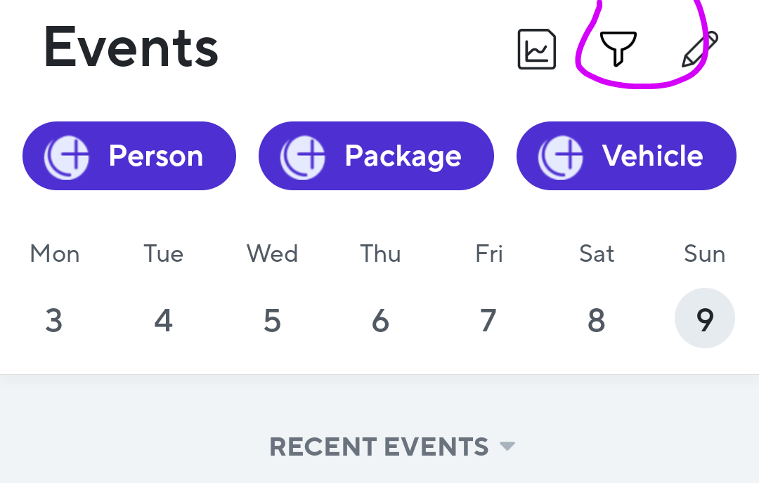 To do this, click the funnel icon in the he top right of the Events page and scroll to the bottom.