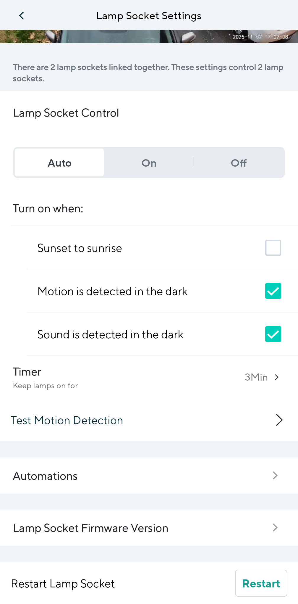 Now I’m curious about something else: If you do something to attempt to trigger motion at your driveway Cam v4, then do those lights turn on and also turn on the lamp in the backyard? I’m wondering if it’s working in both directions or if the Lamp Sockets are activating only when the backyard Cam v3 detects something and completely unresponsive to the Cam v4. I don’t have any Lamp Socket v1s, so my experience with these involves only Lamp Socket v2.