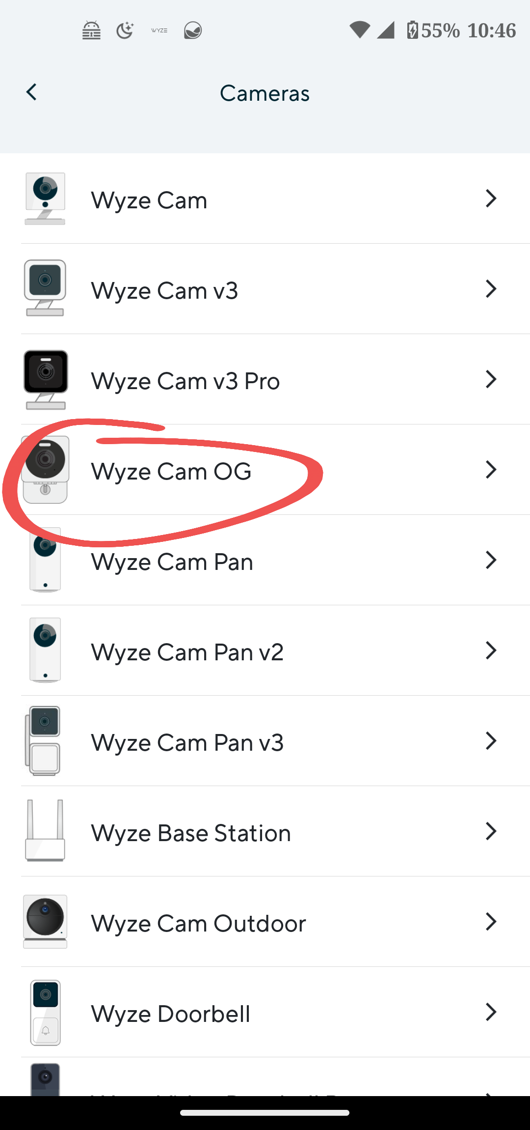 I am using v2.38.1 (161) on my Motorola android, and the OG is the 4th camera type listed on add cameras page. I have not received my OG cameras so can’t test to see if it works.