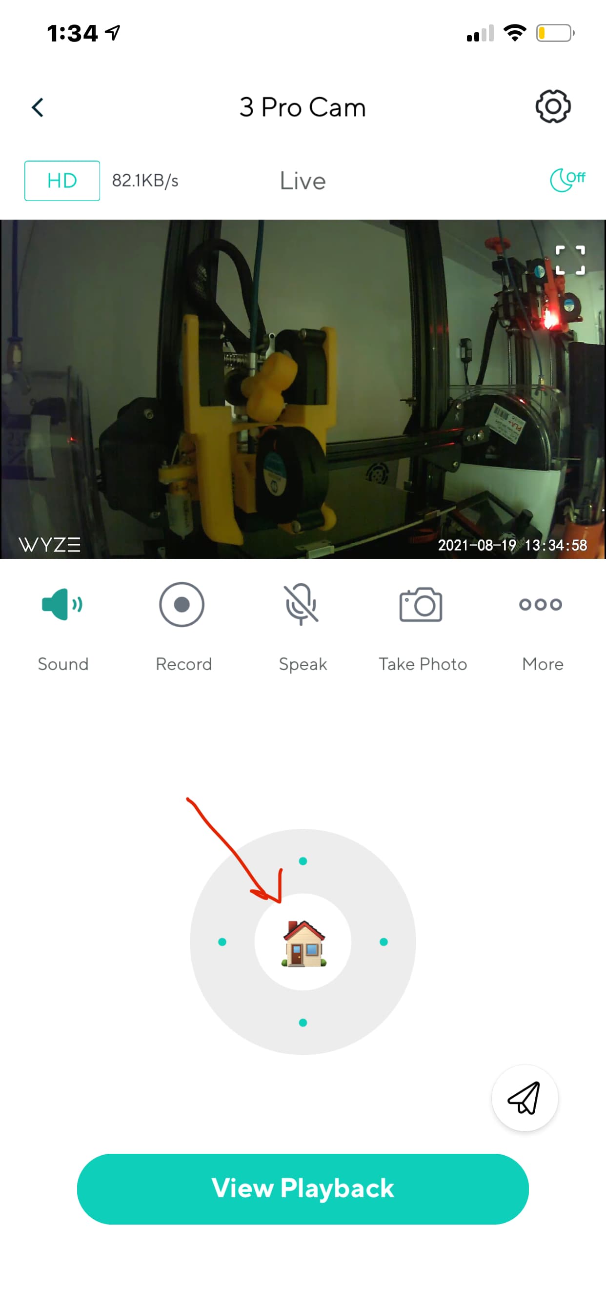 For the Wyze Pan Cam, In the direction control pad, there should be a center button(with a home icon) for homing the camera to a user’s predetermine location… And to pre-determine the location may be hold the home button for more than five seconds and it should Be afixed to that home position. So when the user pans or tilts away from that position they can simply tap the home button and it goes back to the normal position