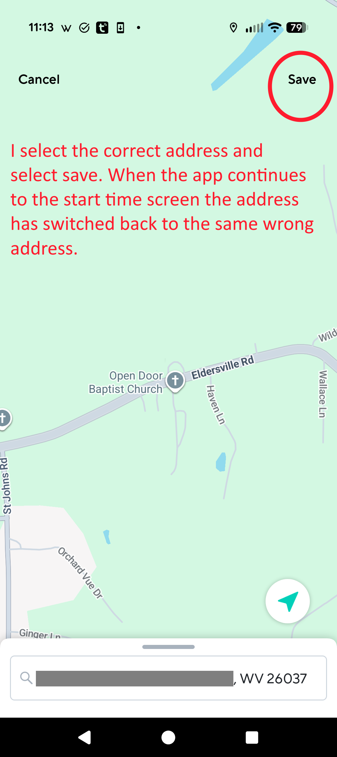 Also, when I navigate into the location selection (like in your first image where you’d tap Update ), I can grab the handle above the address to drag that drawer upward (the little bar above where you show the address in your second image), and that shows my searched location (street address) in RECENT, so that appears to be working correctly for me.