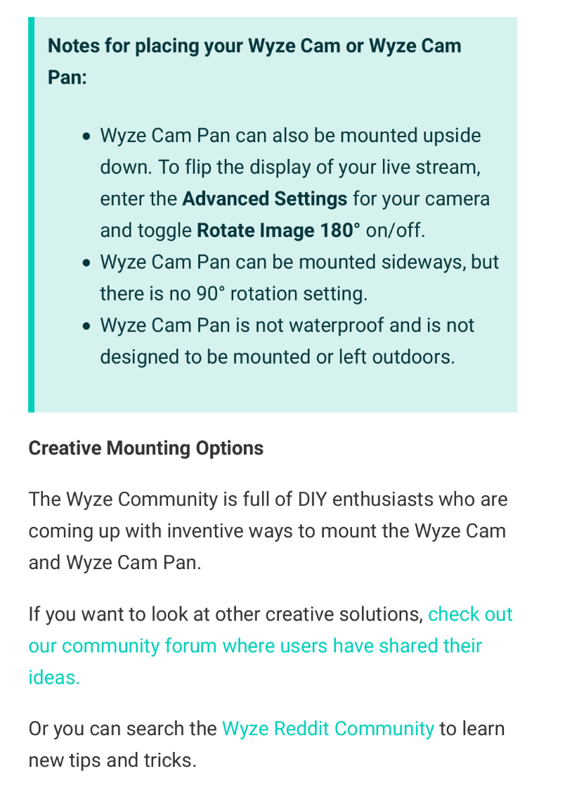 You may have noticed some posts about Wyze Cam Outdoor not recording Events well. There was a bug we fixed with that but there’s a larger issue with the motion detection being tied to the hardware instead of being a pixel comparison algorithm like with Wyze Cam v2 and Pan. When you have the camera upside down, the field in which you’ll best be able to detect motion is different than if you had it right side up using the magnet and metal plate at the top of the camera.